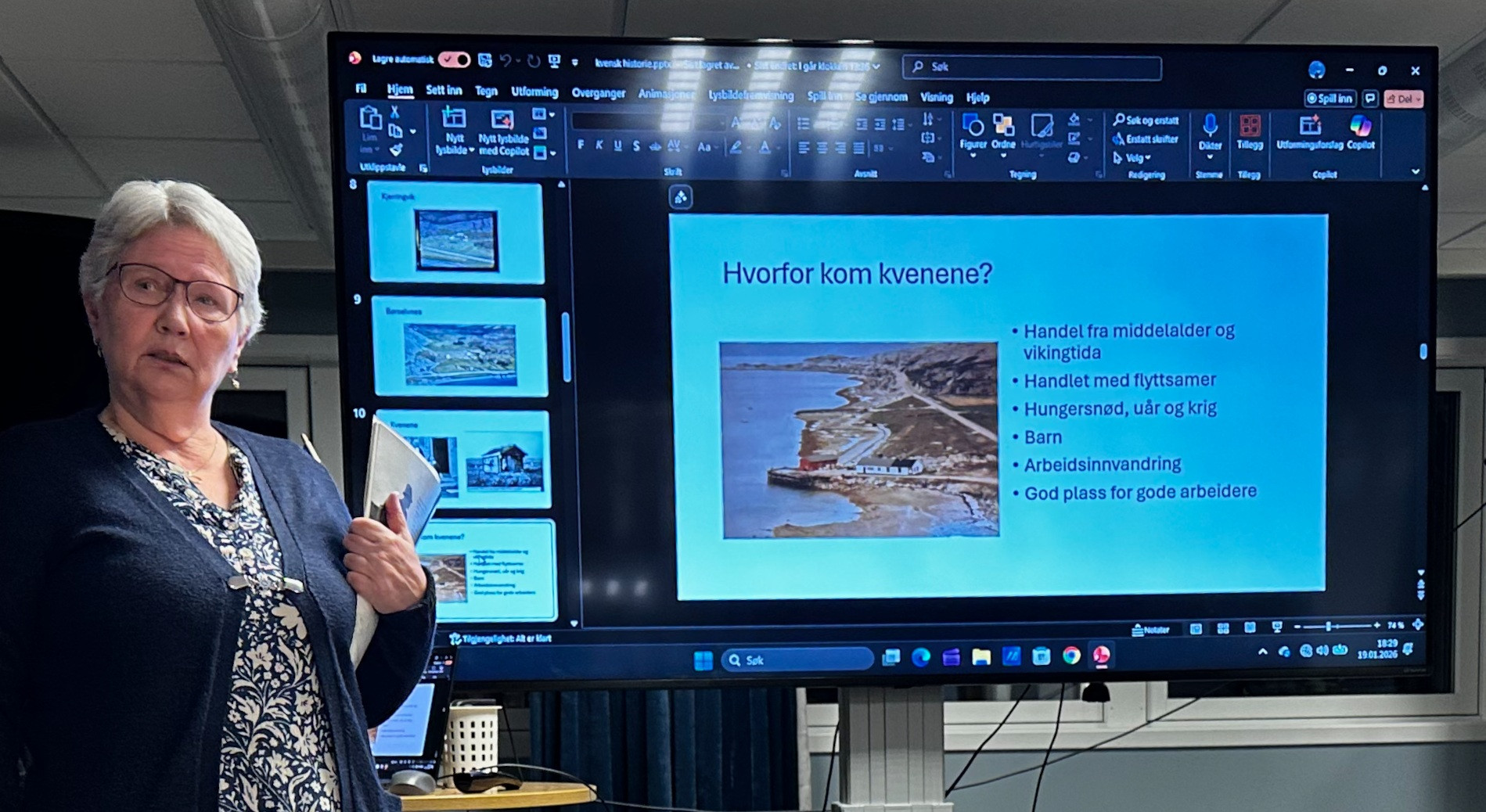 Lill-Evy holdt et foredrag for Rotary hvor hun tok for seg kvensk historie med utgangspunkt i sin egen hjembygd, Børselv i Porsanger.